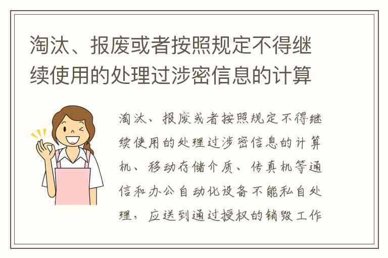 这一规定不仅适用于政府机关,也同样约束所有接触涉密信息的企业和个人。忽视此要求可能面临法律追责,包括行政处罚甚至刑事责任。事实上,近年来已发生多起因私自处理涉密设备导致的泄密案件,凸显了规范处置流程的重要性。