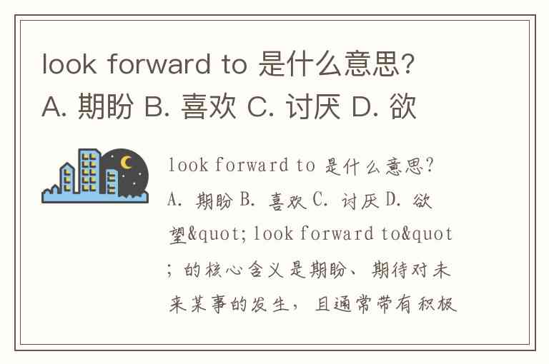 look forward to 是什么意思? A. 期盼 B. 喜欢 C. 讨厌 D. 欲望