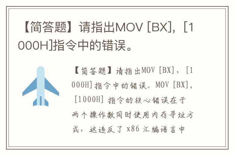 MOV [BX], [1000H] 指令的核心错误在于 两个操作数同时使用内存寻址方式,这违反了 x86 汇编语言中 MOV 指令的基本语法规则。