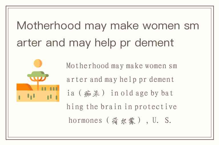 文章核心观点是“母亲身份可能使女性更聪明”,通过大鼠实验说明怀孕荷尔蒙对大脑的保护作用,以及这种效应可能对人类的意义。B选项“Motherhood Makes Women Smarter”直接点明主旨,其他选项(如A“你想变聪明吗?”、C“神秘荷尔蒙”、D“一项重要研究”)均未能准确概括核心内容。