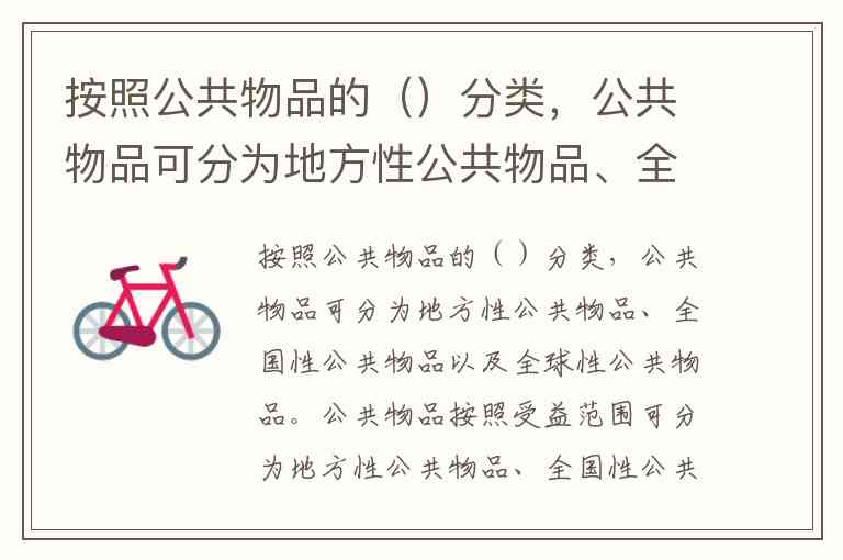 按照公共物品的()分类,公共物品可分为地方性公共物品、全国性公共物品以及全球性公共物品。