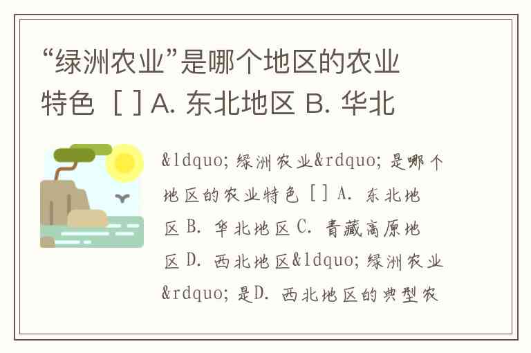 “绿洲农业”是哪个地区的农业特色 [ ] A. 东北地区 B. 华北地区 C. 青藏高原地区 D. 西北地区