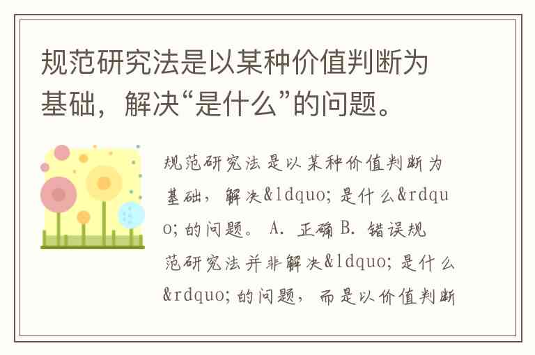 规范研究法是以某种价值判断为基础,解决“是什么”的问题。 A. 正确 B. 错误