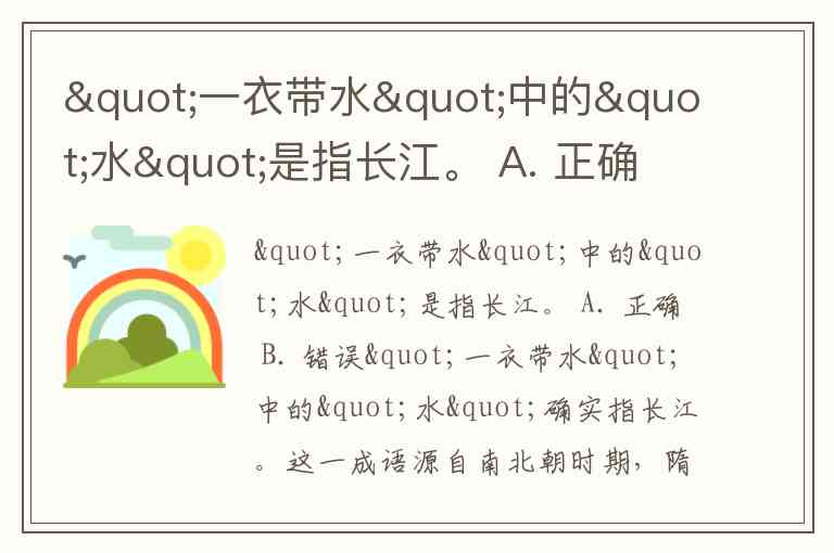 "一衣带水"中的"水"是指长江。 A. 正确 B. 错误