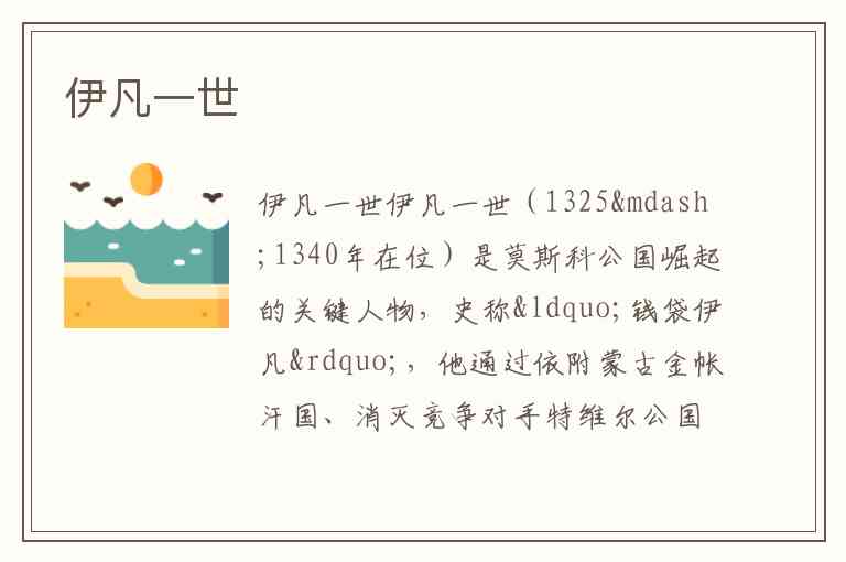 伊凡一世(1325—1340年在位)是莫斯科公国崛起的关键人物,史称“钱袋伊凡”,他通过依附蒙古金帐汗国、消灭竞争对手特维尔公国,将莫斯科打造成罗斯政治与宗教中心,为俄罗斯统一奠定基础。这位被后世评价为“残忍狡诈”的大公,用一场精准的权力游戏改变了罗斯命运。