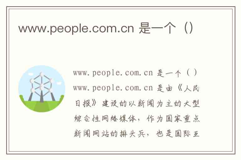 www.people.com.cn 是由《人民日报》建设的以新闻为主的大型综合性网络媒体,作为国家重点新闻网站的排头兵,也是国际互联网上最大的综合性网络媒体之一。其网站类型涵盖综合门户、新闻媒体和新闻报刊,由人民网股份有限公司运营,单位性质为企业,总部位于北京朝阳[6]。