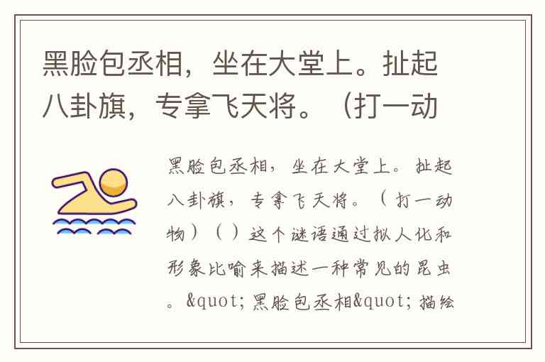这个谜语通过拟人化和形象比喻来描述一种常见的昆虫。"黑脸包丞相"描绘其头部特征,"大堂"指其结网的位置,"八卦旗"形容其编织的圆形网,"飞天将"则暗示它捕捉飞行昆虫的习性。答案是蜘蛛。