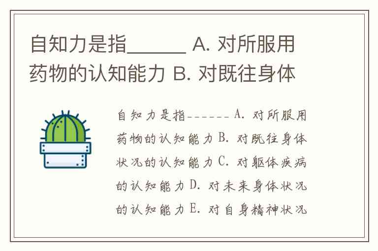自知力是指______ A. 对所服用药物的认知能力 B. 对既往身体状况的认知能力 C. 对躯体疾病的认知能力 D. 对未来身体状况的认知能力 E. 对自身精神状况的认知能力