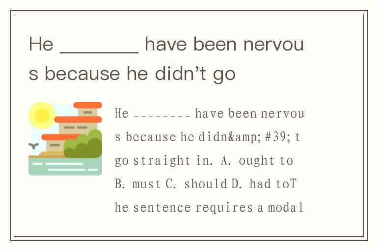He ________ have been nervous because he didn't go straight in. A. ought to B. must C. should D. had to