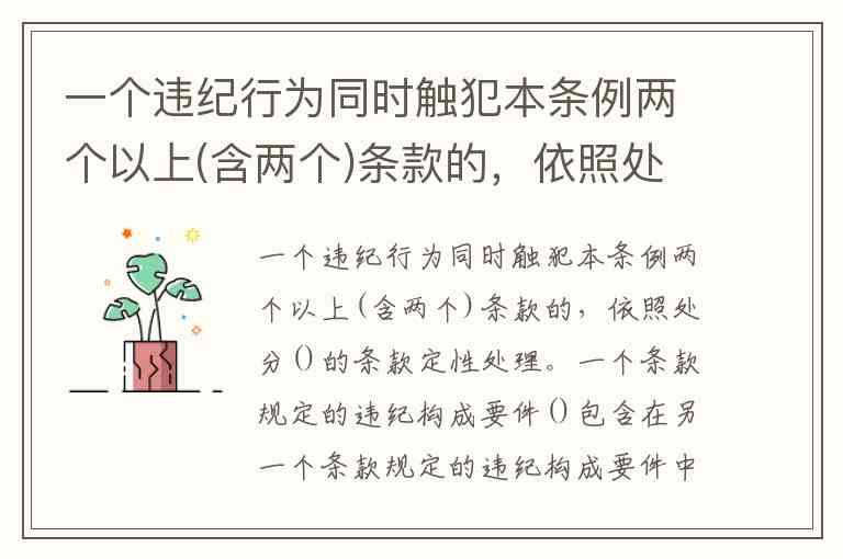 根据《中国共产党纪律处分条例》规定,当一个违纪行为同时触犯多个条款时,应遵循"从一重处断"原则。文档中明确指出,一人有本条例规定的两种以上(含两种)应当受到党纪处分的违纪行为,应当合并处理,按其数种违纪行为中应当受到的最高处分加重一档给予处分。这一规定体现了"从严从重"的纪律审查精神,与条例第四条"把严的基调、严的措施、严的氛围长期坚持下去"的原则一致。