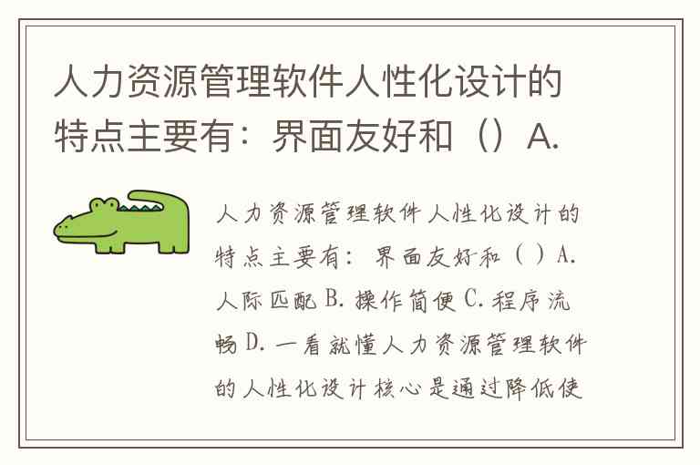 人力资源管理软件人性化设计的特点主要有:界面友好和()A.人际匹配 B.操作简便 C.程序流畅 D.一看就懂
