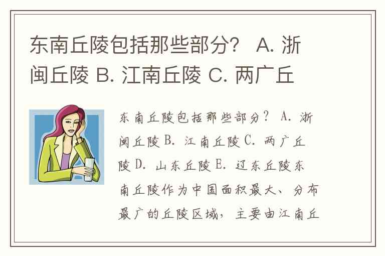 东南丘陵包括那些部分? A. 浙闽丘陵 B. 江南丘陵 C. 两广丘陵 D. 山东丘陵 E. 辽东丘陵