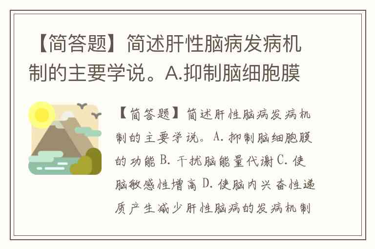 【简答题】简述肝性脑病发病机制的主要学说。A.抑制脑细胞膜的功能 B.干扰脑能量代谢 C.使脑敏感性增高 D.使脑内兴奋性递质产生减少