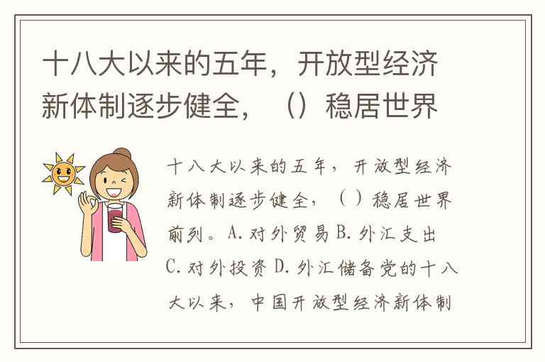 十八大以来的五年,开放型经济新体制逐步健全,()稳居世界前列。A.对外贸易 B.外汇支出 C.对外投资 D.外汇储备