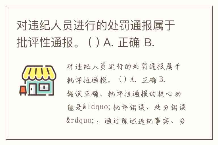对违纪人员进行的处罚通报属于批评性通报。 ( ) A. 正确 B. 错误
