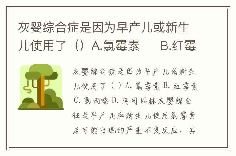 灰婴综合症是因为早产儿或新生儿使用了()A.氯霉素 B.红霉素 C.氯丙嗪 D.阿司匹林