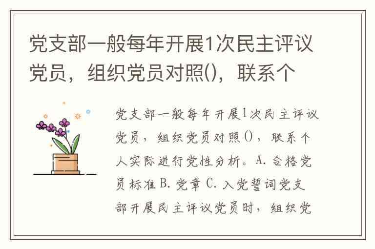 党支部一般每年开展1次民主评议党员,组织党员对照(),联系个人实际进行党性分析。A.合格党员标准 B.党章 C.入党誓词