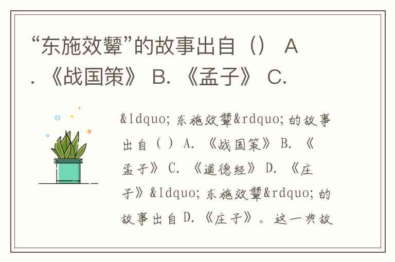 “东施效颦”的故事出自() A. 《战国策》 B. 《孟子》 C. 《道德经》 D. 《庄子》