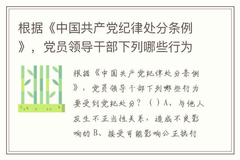根据《中国共产党纪律处分条例》,党员领导干部下列哪些行为要受到党纪处分?()A、与他人发生不正当性关系,造成不良影响的 B、接受可能影响公正执行公务的宴请 C、参加老乡会、战友会 D、购买超过规定标准的小轿车