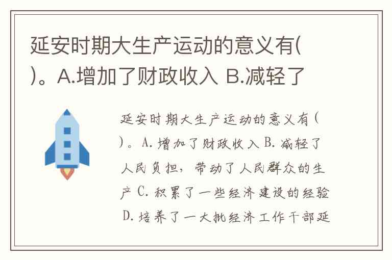 延安时期大生产运动的意义有( )。A.增加了财政收入 B.减轻了人民负担,带动了人民群众的生产 C.积累了一些经济建设的经验 D.培养了一大批经济工作干部