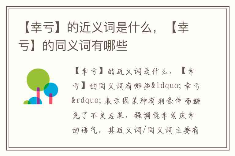 “幸亏”表示因某种有利条件而避免了不良后果,强调侥幸或庆幸的语气。其近义词/同义词主要有: