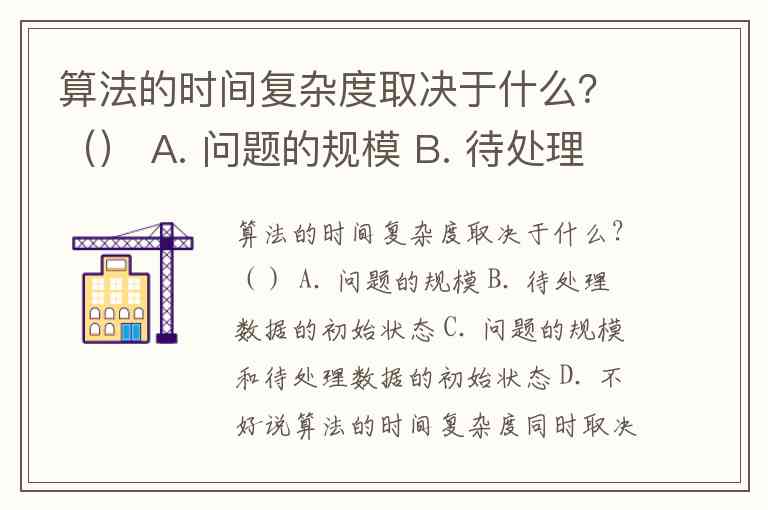 算法的时间复杂度取决于什么?() A. 问题的规模 B. 待处理数据的初始状态 C. 问题的规模和待处理数据的初始状态 D. 不好说