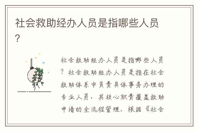 社会救助经办人员是指在社会救助体系中负责具体事务办理的专业人员,其核心职责覆盖救助申请的全流程管理。根据《社会救助暂行办法》,这类人员主要分布在县级民政部门及乡镇(街道),具体承担受理初审、家庭经济状况调查、审核确认等关键环节工作。例如,在最低生活保障和特困人员救助供养工作中,他们需要直接对接困难群众,完成从申请材料核验到家庭经济状况核查的全过程事务。