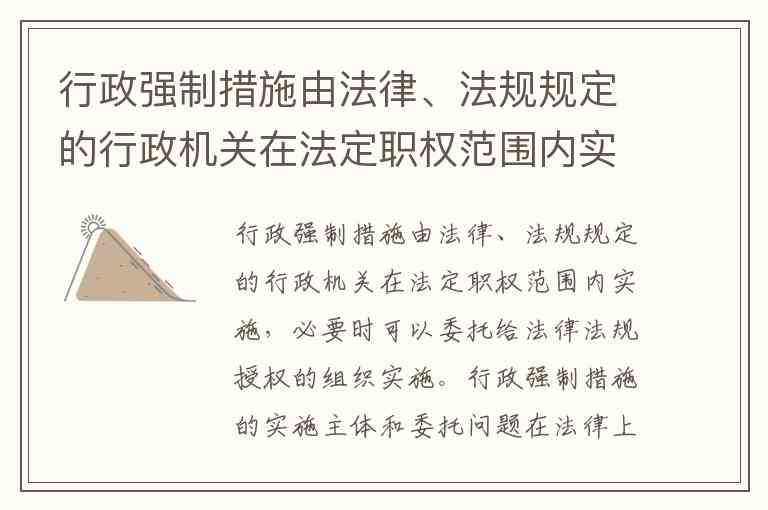 行政强制措施由法律、法规规定的行政机关在法定职权范围内实施,必要时可以委托给法律法规授权的组织实施。
