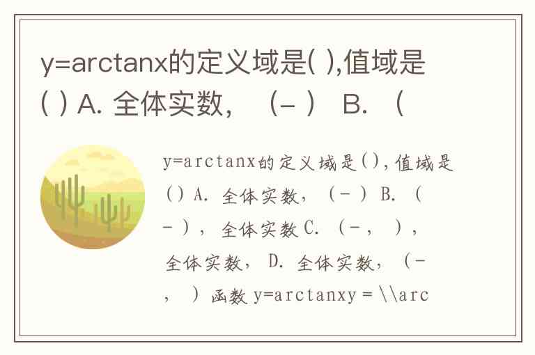 y=arctanx的定义域是( ),值域是( ) A. 全体实数,(- ) B. (- ),全体实数 C. (- , ),全体实数, D. 全体实数,(- , )