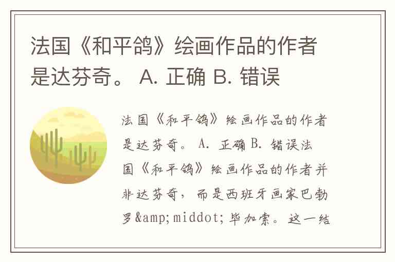法国《和平鸽》绘画作品的作者是达芬奇。 A. 正确 B. 错误