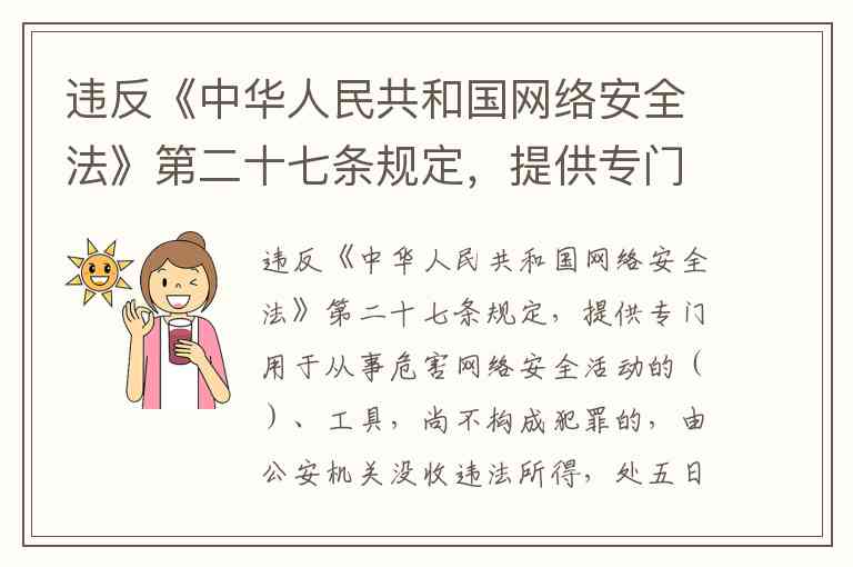 这一法律条款的设置旨在从源头遏制网络攻击工具的传播,维护网络空间安全。现实中,这类"程序、工具"可能包括黑客工具包、恶意软件生成器等,它们的存在显著降低了网络攻击的技术门槛。理解这一规定有助于公众明确网络行为边界——不仅自身不得从事危害网络安全的活动,也需警惕成为攻击工具传播的中间人。