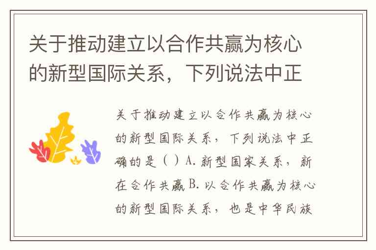 关于推动建立以合作共赢为核心的新型国际关系,正确的说法是A、B、C。