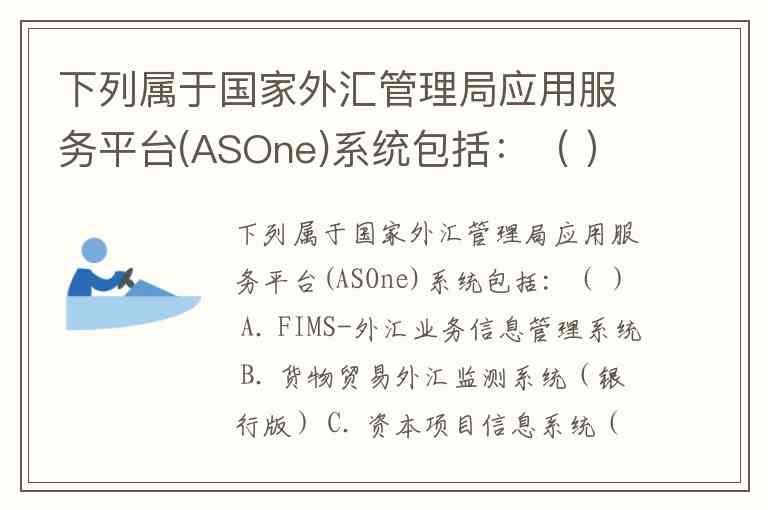 下列属于国家外汇管理局应用服务平台(ASOne)系统包括:( ) A. FIMS-外汇业务信息管理系统 B. 货物贸易外汇监测系统(银行版) C. 资本项目信息系统(银行版) D. RCPMIS-人民币跨境收付信息管理系统