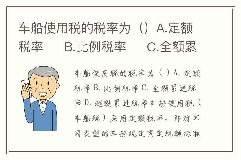 车船使用税的税率为()A.定额税率 B.比例税率 C.全额累进税率 D.超额累进税率
