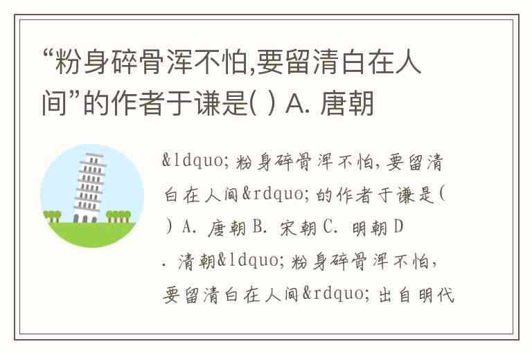 “粉身碎骨浑不怕,要留清白在人间”的作者于谦是( ) A. 唐朝 B. 宋朝 C. 明朝 D. 清朝