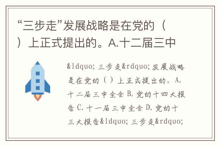 “三步走”发展战略是在党的()上正式提出的。A.十二届三中全会 B.党的十四大报告 C.十一届三中全会 D.党的十三大报告