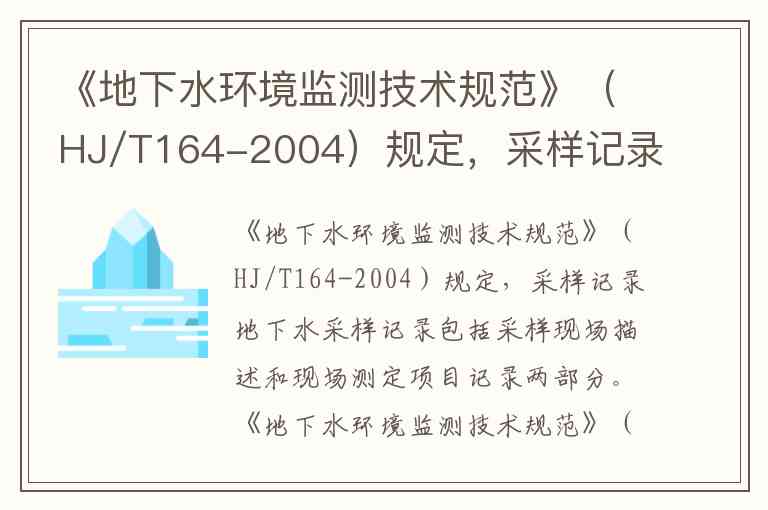 《地下水环境监测技术规范》(HJ/T164-2004)规定,采样记录地下水采样记录包括采样现场描述和现场测定项目记录两部分。