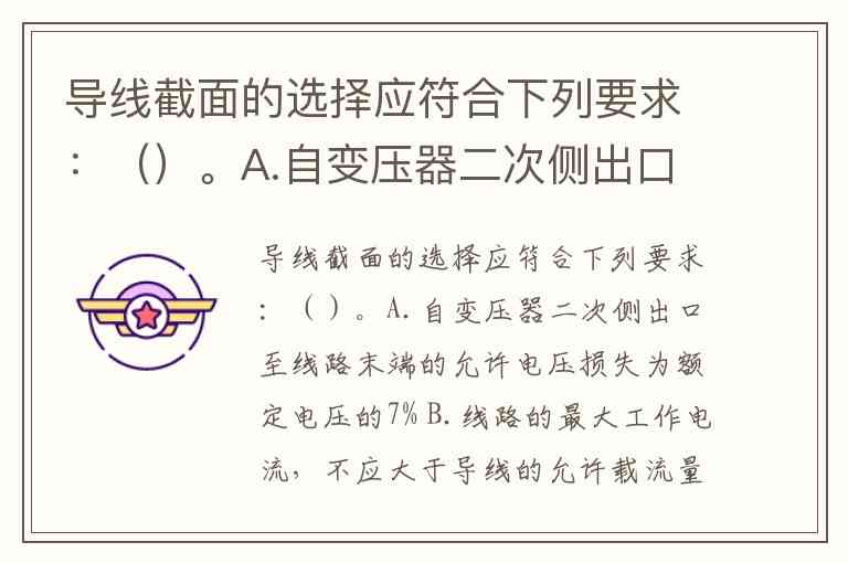 导线截面的选择应符合下列要求:()。A.自变压器二次侧出口至线路末端的允许电压损失为额定电压的7% B.线路的最大工作电流,不应大于导线的允许载流量 C.铝绞线的最小截面为16平方毫米 D.三相四线制的零线截面,不宜小于相线截面的50%