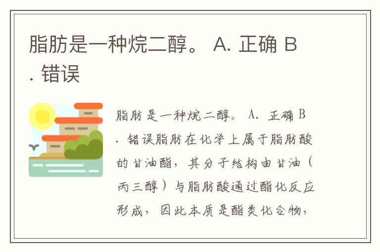 脂肪是一种烷二醇。 A. 正确 B. 错误