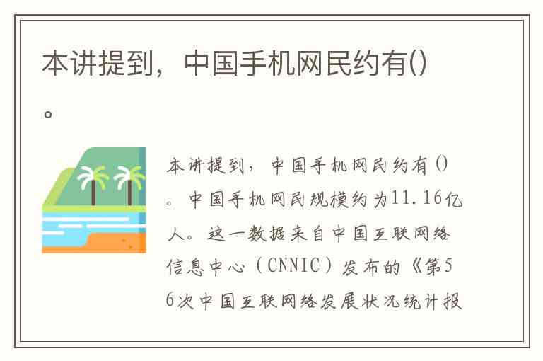 本讲提到,中国手机网民约有()。