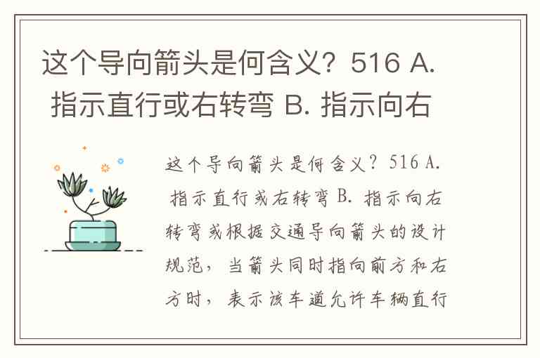 这个导向箭头是何含义?516 A. 指示直行或右转弯 B. 指示向右转弯或