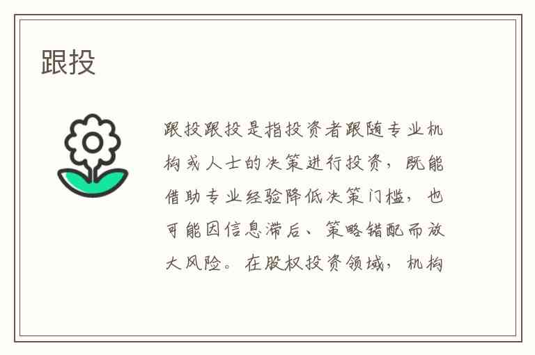 跟投是指投资者跟随专业机构或人士的决策进行投资,既能借助专业经验降低决策门槛,也可能因信息滞后、策略错配而放大风险。在股权投资领域,机构常通过持股或协议安排实现跟投,而普通投资者接触更多的基金跟投,则需在信任专业与独立判断间找到平衡。