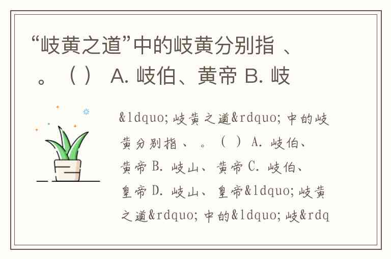 “岐黄之道”中的岐黄分别指 、 。( ) A. 岐伯、黄帝 B. 岐山、黄帝 C. 岐伯、皇帝 D. 岐山、皇帝