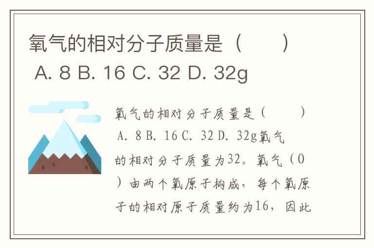 氧气的相对分子质量是( ) A. 8 B. 16 C. 32 D. 32g