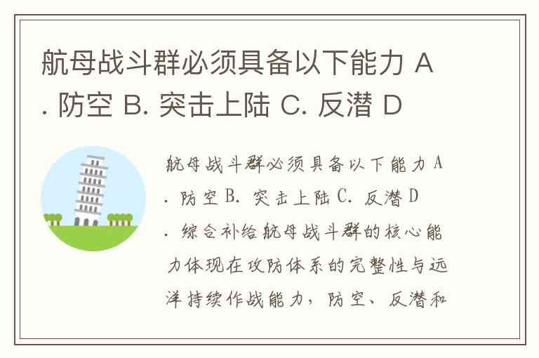 航母战斗群必须具备以下能力 A. 防空 B. 突击上陆 C. 反潜 D. 综合补给