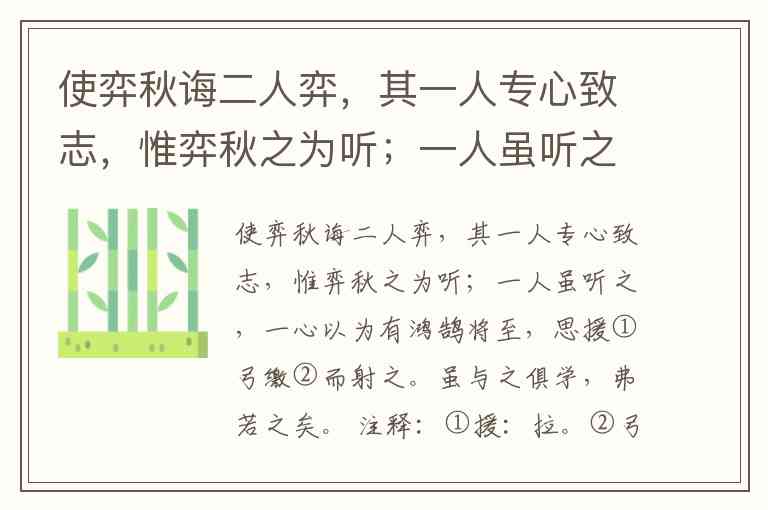 在《学弈》这则典故中,两个学徒的学习效果差异源于专注度的不同,而准确理解关键词能帮我们更深入把握故事寓意。下面结合上下文解析两个词语的含义: