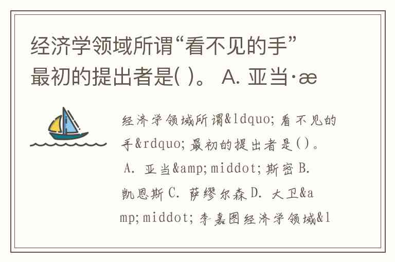 经济学领域所谓“看不见的手”最初的提出者是( )。 A. 亚当·斯密 B. 凯恩斯 C. 萨缪尔森 D. 大卫·李嘉图