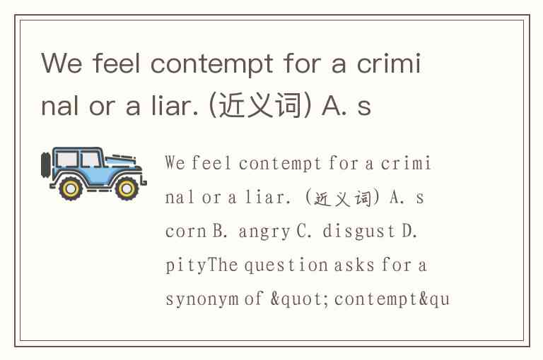 We feel contempt for a criminal or a liar. (近义词) A. scorn B. angry C. disgust D. pity