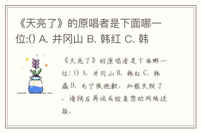 《天亮了》的原唱者是下面哪一位:() A. 井冈山 B. 韩红 C. 韩磊 D. 毛宁