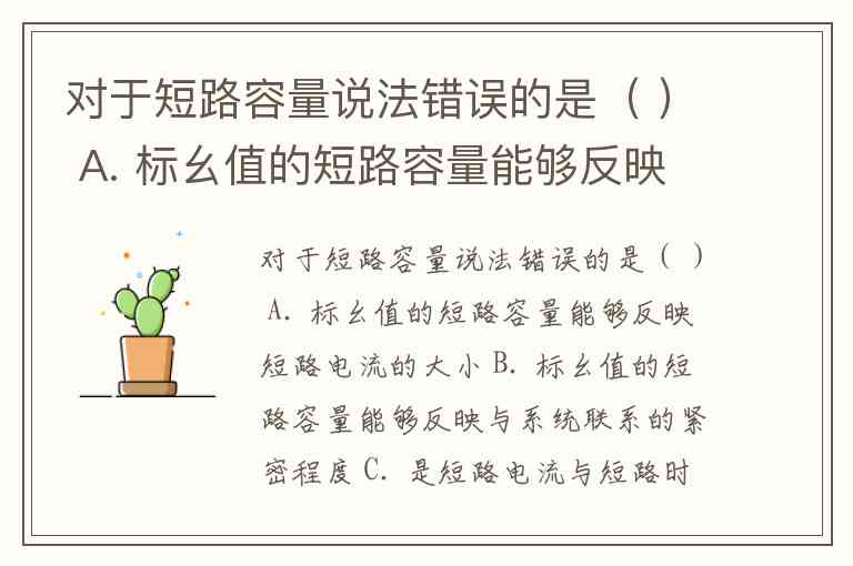 对于短路容量说法错误的是( ) A. 标幺值的短路容量能够反映短路电流的大小 B. 标幺值的短路容量能够反映与系统联系的紧密程度 C. 是短路电流与短路时电压的乘积 D. 标幺值的短路容量与短路电流等值